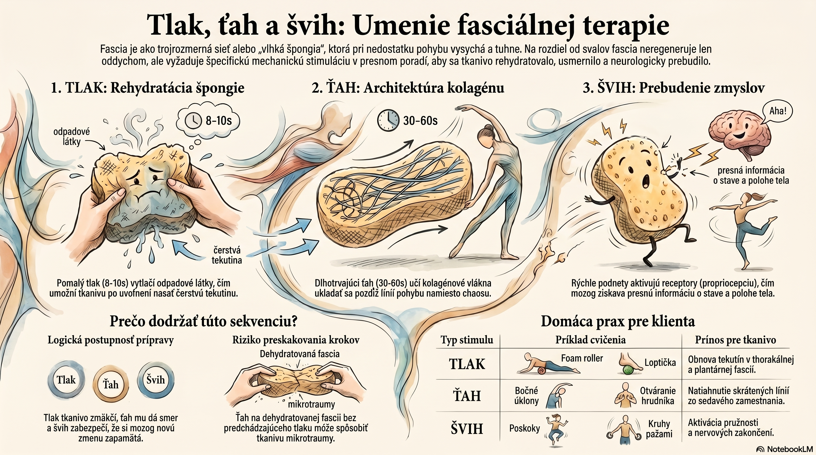 Všetky tri sú nevyhnutné. Ak pracuješ len s tlakom (čo mnohí maséri robia), odstraňuješ symptómy, ale neindukovateľš dlhodobú zmenu v kvalite tkaniva.